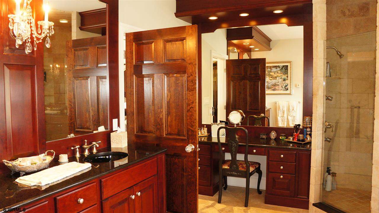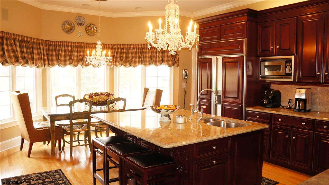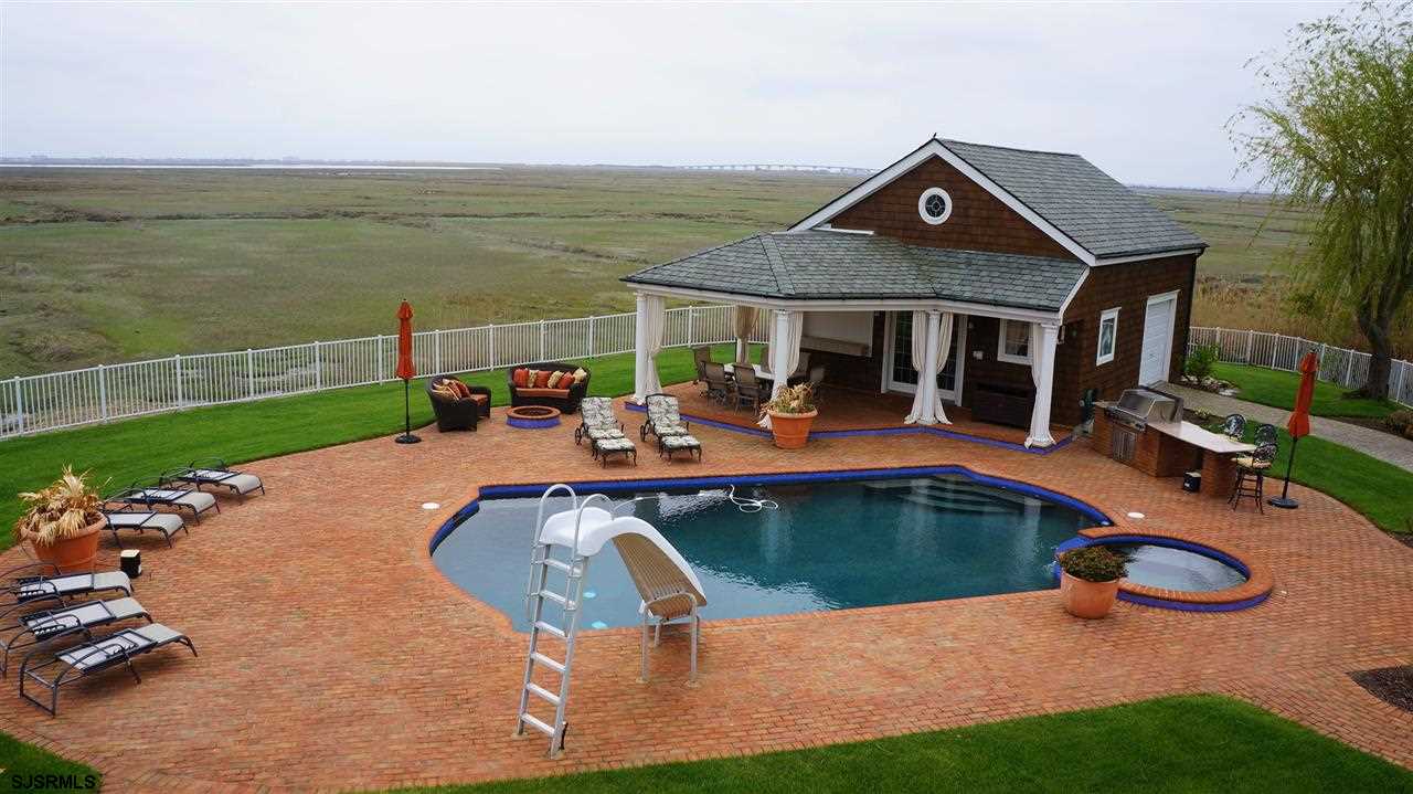 Among Linwood's most SPECTACULAR settings ever offered for sale. Custom built on Waterfront Peninsula with 360 views! One of a kind palatial waterfront estate with design, floor plan, and finishes meeting most demanding tastes. Pool house/Cabana with kitchen, bar, bath, basement and dock to bay tributary. 3rd floor in house equals enormous "above-ground basement." This fine home exceeds all expectations and may never again be duplicated.