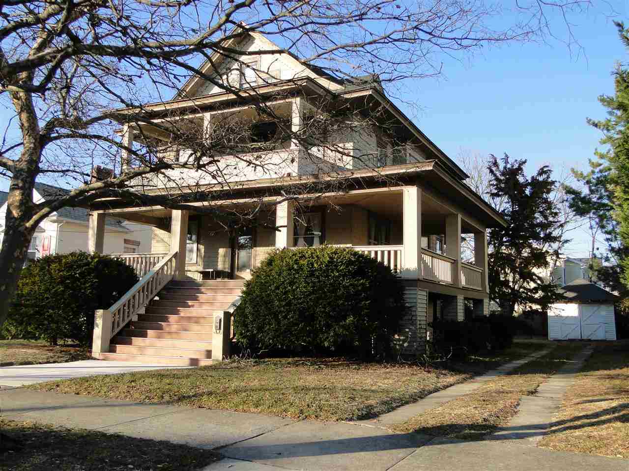 This beautiful stately home in the desirable Gardens on a tree lined street is full of character, original unpainted wood work, wood burning fireplace, huge wrap around front porch, 2nd floor front deck, full first floor with laundry room, roughed in plumbing for a bathroom and plenty of additional space for you to finish. Big eat in kitchen, huge living and dining rooms with lots of sun-filled windows, large yard, detached 1 car garage all located a short walk to great Ocean City beaches.